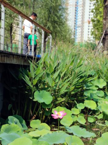 濕地園林一期景觀栽種了100多種植物,有旱柳、國槐等濟南本地樹種,還有荷花、蘆葦等20多種水生植物,良好的生態(tài)環(huán)境吸引了不少白鷺、??等鳥類棲息,“棹動芙蓉落,船移白鷺飛”。