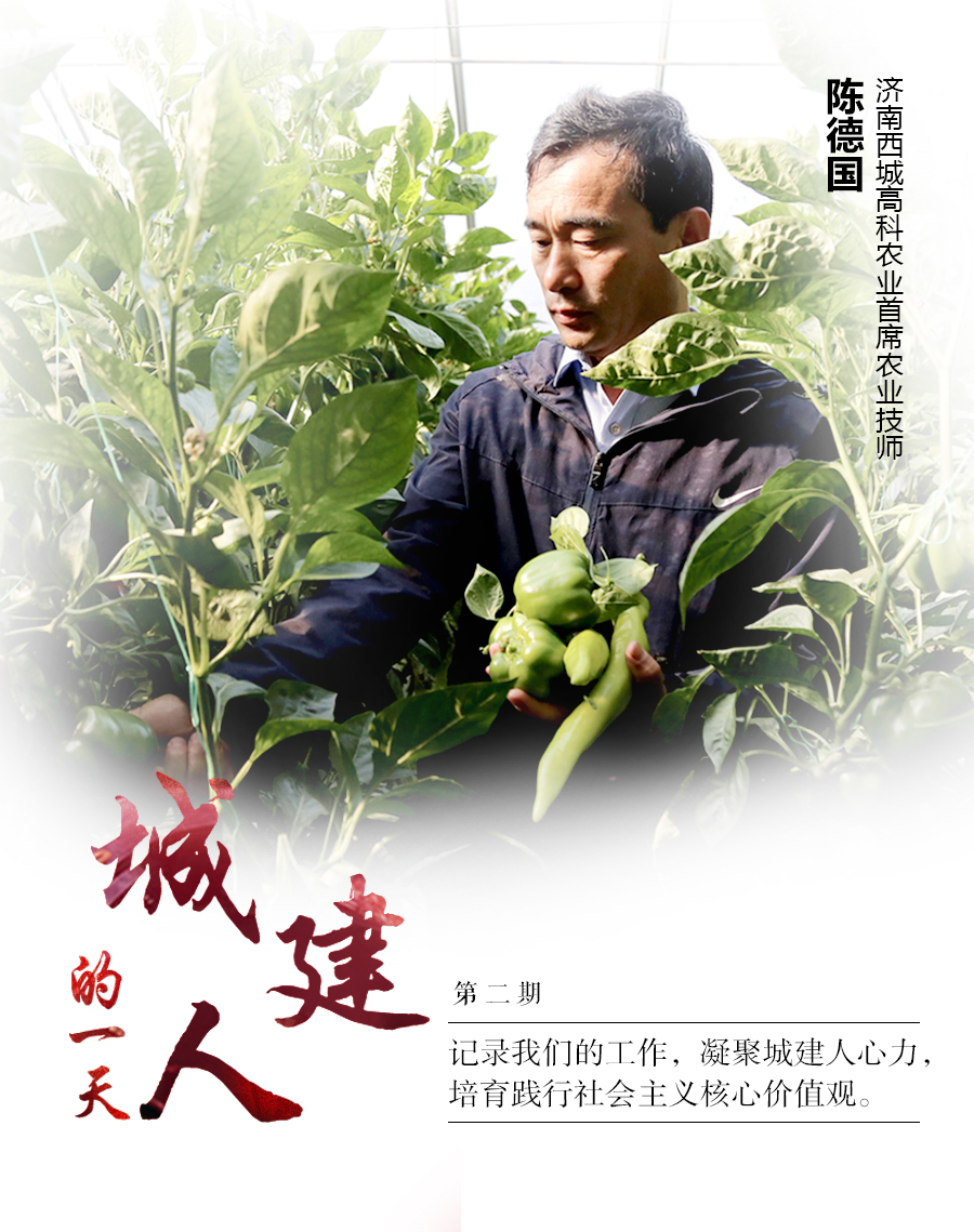 陳德國,現任濟南城市建設集團所屬濟南西城高科農業(yè)發(fā)展有限公司首席農業(yè)技師。2000年,帶頭建起商河縣玉皇廟鎮(zhèn)第一批高溫大棚。2011年,在濟南市菜椒評比大賽獲得菜椒王特等獎。2014年7月進入高科公司工作,歷任技術員、園區(qū)副主任,生產部技術總監(jiān)。2017年獲得濟南市勞動模范稱號,2018年獲得山東省勞動模范稱號。