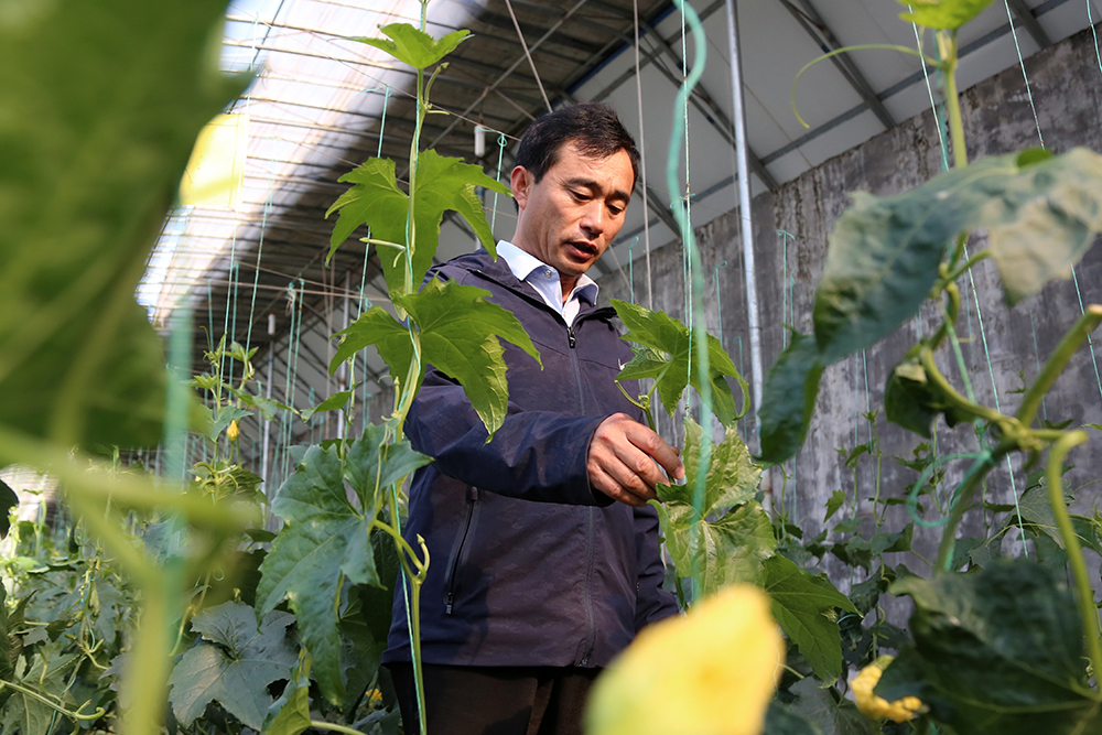 在絲瓜棚,陳德國邊檢查著絲瓜生長情況邊解釋說“這個棚的種植戶貪多,總想著一個藤上結好幾個瓜,但實際上果多不等于產量高,有時候一個藤上好幾個果反而營養(yǎng)供不上了。”對于各類蔬菜種植,經過18年的不斷實踐學習,陳德國逐漸總結出了自己的一套“種植經”。