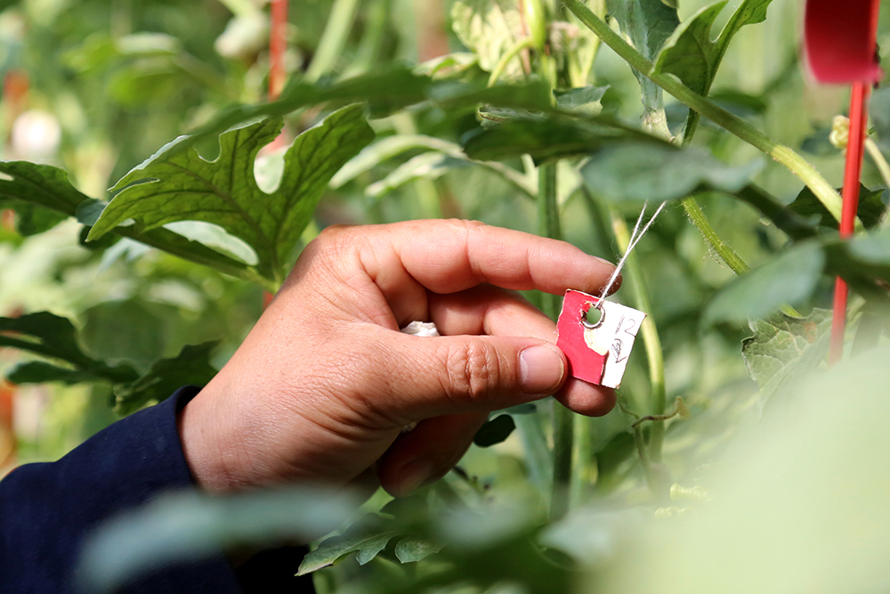 9:15在園區(qū)西瓜種植上,陳德國沒有照搬仁風西瓜的“彩繩法”,而是自創(chuàng)“標簽作法”,即根據授粉時間與成熟期給西瓜藤掛上不同號碼的牌子,根據生長周期判斷是否成熟。