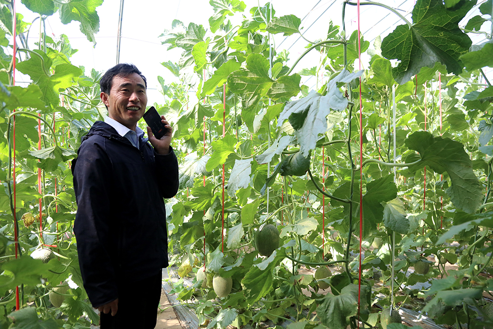在哈密瓜種植棚里,陳德國已經電話安排好了本周六的采摘活動。現在正值采摘黃金季,前來植樹踏青、大棚蔬菜瓜果采摘、園區(qū)觀光的團隊絡繹不絕。