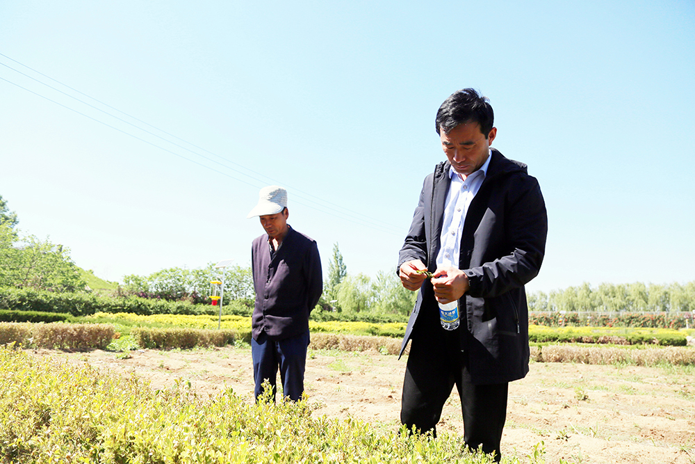 14:00去往連棟溫室的路上,陳德國碰到了園林區(qū)的一位同事,向他反映了部分苗木的病蟲害問題,陳德國隨即與同事實地察看了病蟲害情況,制定了應對方案。防患于未然,哪怕碰到一點小問題也不大意拖延,這是陳德國的一貫作風。