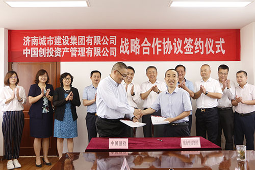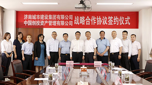 近日,濟南城市建設(shè)集團有限公司(以下簡稱“集團”)與中國創(chuàng)投資產(chǎn)管理有限公司(以下簡稱“中國創(chuàng)投”)舉行戰(zhàn)略合作協(xié)議簽約儀式。中國創(chuàng)投董事長王大明,總裁徐浩,副總裁王大永,城市建設(shè)集團黨委書記、董事長李國祥,黨委副書記、總經(jīng)理李培杰,總會計師范天云等相關(guān)負(fù)責(zé)同志出席了簽約儀式。濟南市財政局副局長王宏偉受邀參加活動。