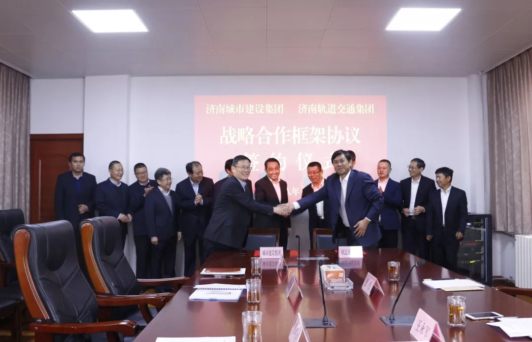 雙方座談交流后,濟(jì)南軌道交通集團(tuán)副總經(jīng)理潘軍與濟(jì)南城市建設(shè)集團(tuán)副總經(jīng)理許為民共同簽署了《戰(zhàn)略合作框架協(xié)議書》。