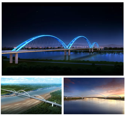 該方案打破了黃河河面和環(huán)境的單調(diào)平直,采用兩小拱一大拱的造型,將遠(yuǎn)山近水烘托調(diào)和,把水面和陸地相連,連接黃河的南岸與北岸,連接濟南的昨天與今天,“攜河”發(fā)展,將“屏障”變?yōu)?ldquo;資源”。河川秀美,一城山色,充分體現(xiàn)了濟南山水文化含蓄、輕柔的質(zhì)樸美。