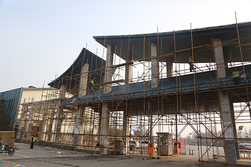 道路廣場及展園維修工程主要以辦公樓、主展館及各展園建筑墻面、地面、防水維修以及園區(qū)道路、廣場維修為主。目前,破損墻皮打磨處理約8000平方米,鋼制結構除銹打磨刷漆約4500平方米。由于展園較分散、維修量大,計劃增加施工人員,加快工程施工進度,確保按期完工。