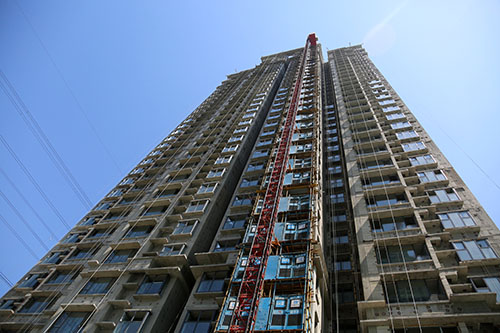目前,吳家堡安置房一期工程全部17棟單體結(jié)構(gòu)及二次結(jié)構(gòu)已經(jīng)完成,17棟樓的屋面防水、室內(nèi)抹灰也已完成,正在進(jìn)行室內(nèi)瓷磚鑲貼、混凝土地面及外墻抹灰施工,鋁合金窗安裝已完成70%,電梯的安裝已全面展開。在配套方面,裙房及商業(yè)結(jié)構(gòu)、車庫頂板防水均已完成,室外回填土已完成70%,園林綠化施工單位已進(jìn)場。