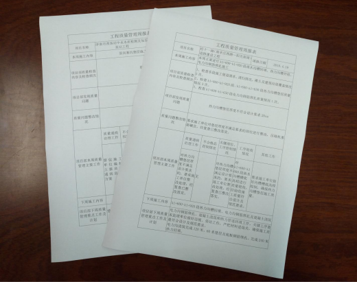 項(xiàng)目部接收質(zhì)量管理交底,并承諾貫徹執(zhí)行。現(xiàn)各項(xiàng)目已按交底要求開展相關(guān)工作,并開始上報質(zhì)量管理工作周報等報表,公司可及時掌握各項(xiàng)目質(zhì)量管理動態(tài),有針對性的調(diào)度各項(xiàng)目部質(zhì)量管理工作,有效提高了公司質(zhì)量管理監(jiān)管的力度。