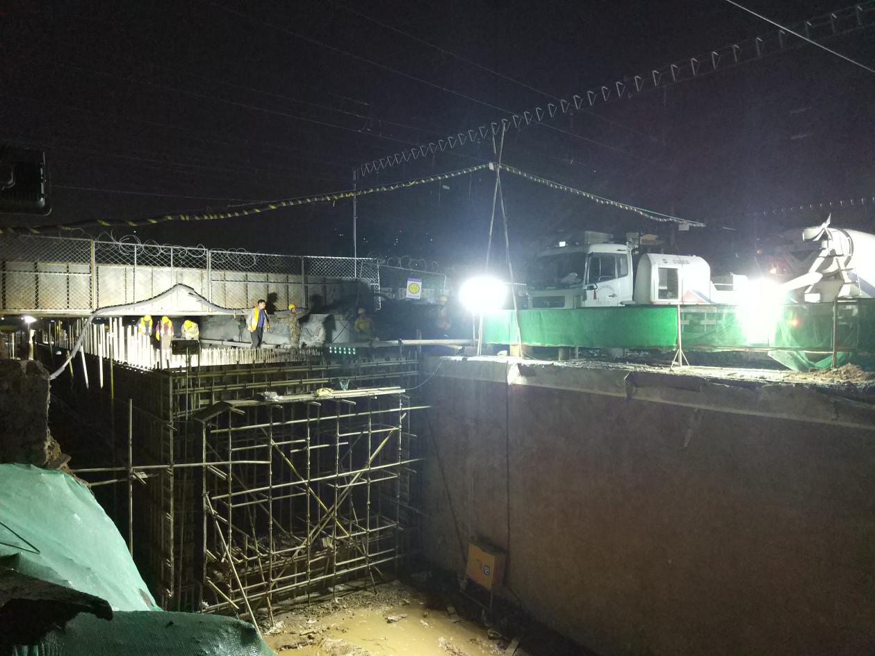 新建鳳凰路穿越膠濟鐵路立交橋工程站場改造涉及工務、電務、通信、電力牽引供電專業(yè)立體交叉作業(yè),各專業(yè)需同步作業(yè),協(xié)調(diào)工作量大,交叉作業(yè)安全壓力大。為確保六月份信號大要點順利實施,五一期間,工程建設者們不分晝夜、加班加點,協(xié)調(diào)鐵路部門設備管理單位全程監(jiān)控配合;加強防護員與駐站聯(lián)絡員聯(lián)系頻率;加強安全文明管理工作。期間組織作業(yè)人員100余人次,圓滿的完成了計劃任務。