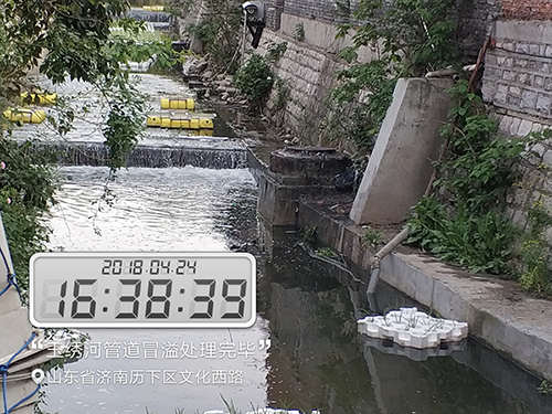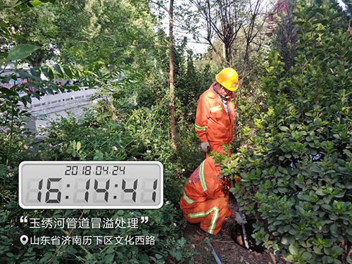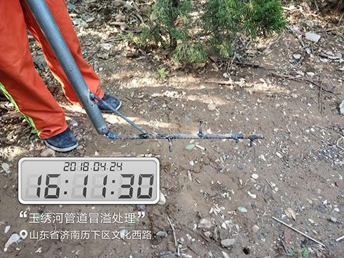 2018年4月24日濟(jì)南市政公用資產(chǎn)管理運(yùn)營有限公司接到濟(jì)南市排水管理服務(wù)中心通知,在玉繡河下游發(fā)現(xiàn)一處檢查井冒溢,污水冒溢至玉繡河內(nèi)直接造成河道污染,接到通知后,公司立即安排應(yīng)急搶險(xiǎn)小組前往現(xiàn)場,經(jīng)過現(xiàn)場排查該管段位于玉繡河河床內(nèi),不屬于我公司管轄范圍,按照市城鄉(xiāng)水務(wù)局“2018清網(wǎng)行動(dòng)”精神指示,本著有險(xiǎn)情先搶險(xiǎn)的原則,公司對該冒溢點(diǎn)立即進(jìn)行搶修,保證管網(wǎng)正常運(yùn)行。