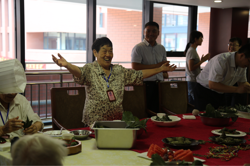 在一同欣賞了廚師的精彩表演后,所有人一同投入到了火熱的包粽子環(huán)節(jié)中。劉開慶說:“從來都是吃包好了的粽子,做好的飯,這次啊,也讓我們自己動手做給大家吃!”