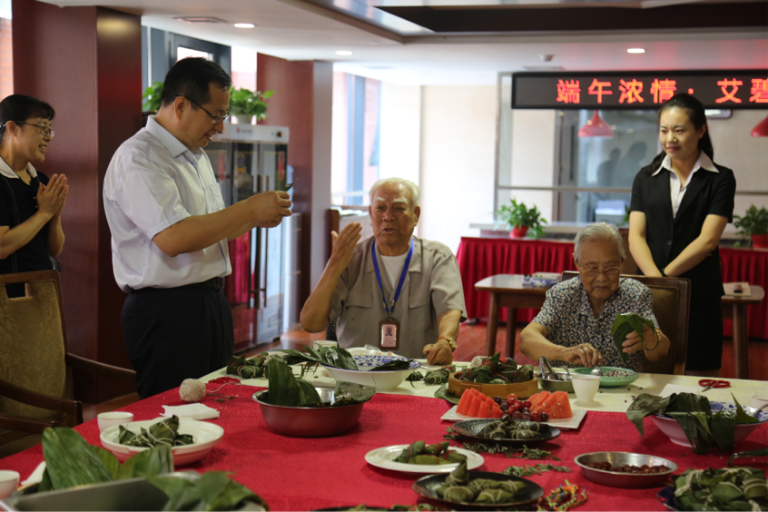 五月五,是端陽。門插艾,香滿堂;吃粽子,灑白糖;龍舟下水喜洋洋。6月18日,山東濟南養(yǎng)老服務中心的老人們迎來了入住以來的第一個端午節(jié),服務人員們也忙得不亦樂乎。