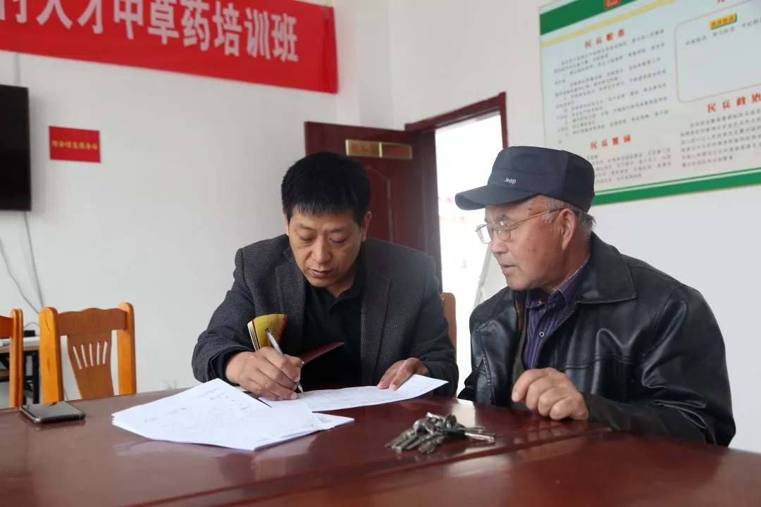到村后,張慶紅首先與村委會(huì)副主任路傳童對(duì)接了農(nóng)田灌溉機(jī)井安裝電表及貧困戶安置房維修事宜。