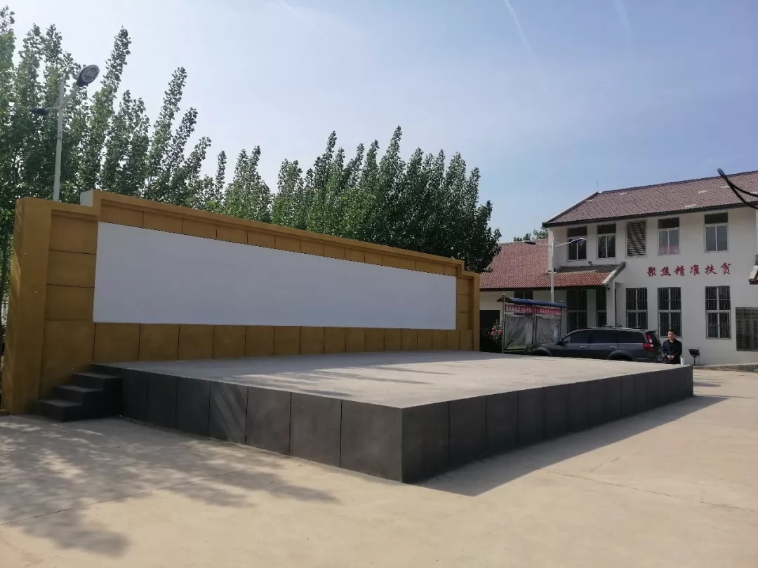 村委會(huì)辦公樓前,新建成的鄉(xiāng)村大舞臺(tái)即將投入使用。除了脫貧致富提升村民物質(zhì)生活水平,張慶紅還積極協(xié)調(diào)各種資源,不斷努力提升村民精神文化生活水平。近年來,村里通過墻繪、宣傳板等宣傳孝道,評(píng)比“文明家庭”“好婆婆”“好媳婦”等,并成立紅白理事會(huì),倡導(dǎo)文明、節(jié)儉新風(fēng)。同時(shí),在集團(tuán)和各相關(guān)單位大力支持下,先后開展“一元愛”、“金暉助老”、公益崗、留守兒童支教、扶貧公益晚會(huì)、送戲下鄉(xiāng)等系列活動(dòng)。