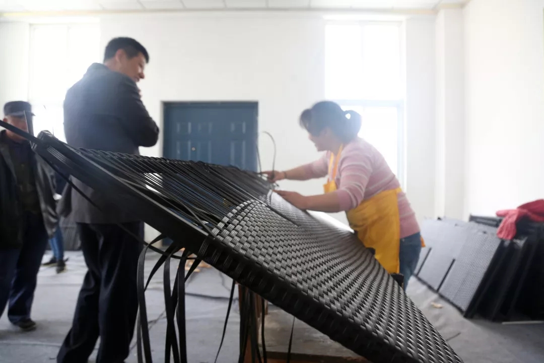 10:00張慶紅來到扶貧車間察看藤藝編織情況,“我們加工車間這邊原料馬上沒了,麻煩抓緊運(yùn)過一批來”,了解到加工車間的實(shí)際問題后,張慶紅現(xiàn)場(chǎng)電話協(xié)調(diào)解決。張慶紅跑了濱州、滕州、商河、長(zhǎng)清等地的近20家企業(yè),反復(fù)研究論證,征求群眾意見,最后決定引進(jìn)藤藝編織企業(yè)。“這個(gè)項(xiàng)目好學(xué),收入可觀,還不限制時(shí)間,不出村就能掙錢,得到了村民們的認(rèn)可”,張慶紅說道。
