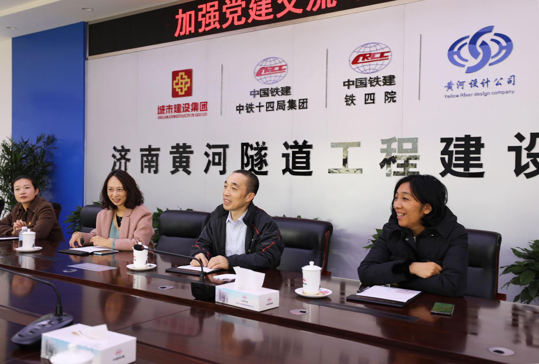 全體人員隨后又來(lái)到濟(jì)南黃河隧道項(xiàng)目部。支部與城隧公司黨支部書(shū)記、執(zhí)行董事張健及項(xiàng)目工作人員進(jìn)行了座談,雙方著重對(duì)支部目前的工作情況以及今后交流共建形式進(jìn)行了交流探討。張健部長(zhǎng)介紹了穿黃隧道工程項(xiàng)目的進(jìn)展情況,范總對(duì)集團(tuán)目前投融資工作也進(jìn)行簡(jiǎn)要介紹,投融資部的全體人員也參與了交流并表示,在今后的工作中要繼續(xù)積極地配合,做好資金支持與服務(wù)工作。