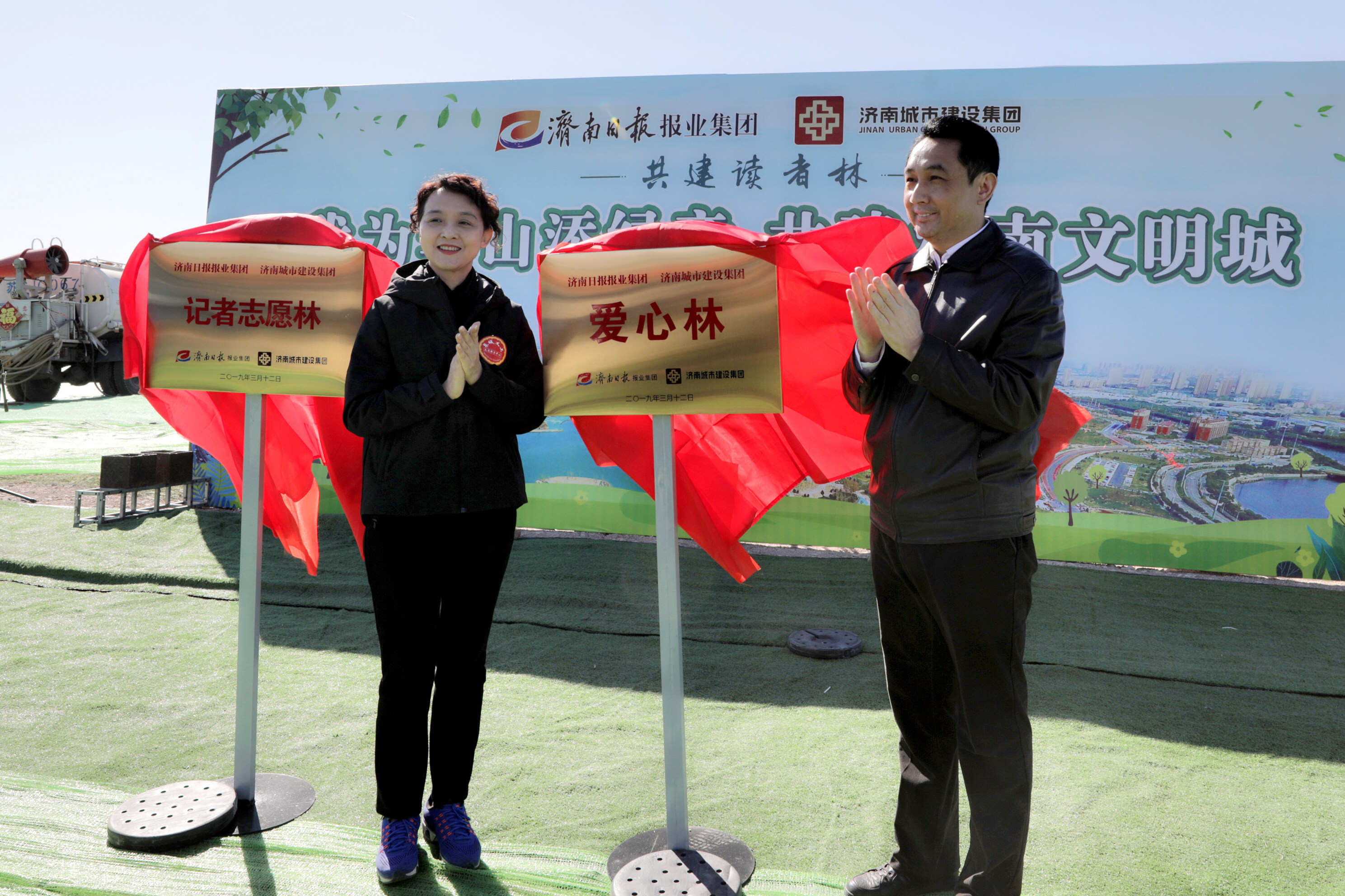 在華山歷史文化濕地公園內(nèi),來自雙方單位的干部職工、泉城義工、小記者代表等共計(jì)近500人春種華山,并在華山設(shè)立“記者志愿林”和“愛心林”。濟(jì)南城市建設(shè)集團(tuán)黨委書記、董事長李國祥,濟(jì)南日報(bào)報(bào)業(yè)集團(tuán)董事長、黨委書記、濟(jì)南日報(bào)社社長馬利共同為“記者志愿林”和“愛心林”揭牌。