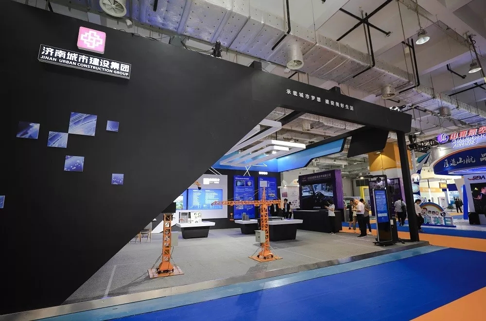 濟南建設集團的展臺位于濟南國際會展中心二層,約108平米的空間搭建極具科技感,展位設計采用藍色與黑色的色調搭配,“科技智慧藍”的色調契合本次信博會主題,以藍色彰顯出科技智慧的特色,“時尚莊重黑”的色調以黑色的莊重傳遞出品牌的強大力量,黑色的時尚將在眾多展位中脫穎而出。同時,配合相關技術展示,展現(xiàn)出建設集團在省會濟南的大建設大發(fā)展所具備的強大實力。