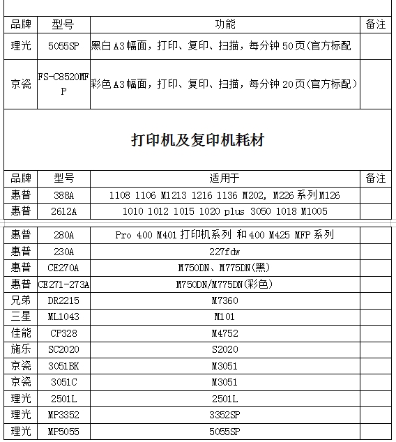 現(xiàn)對集團(tuán)打印機(jī)、耗材及周邊設(shè)備采購選取供應(yīng)商進(jìn)行詢價,有關(guān)事項通知如下,歡迎各單位參加報價。