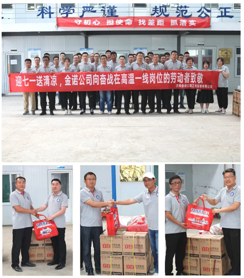 炎炎夏日,氣溫持續(xù)攀升,工地現(xiàn)場(chǎng)更是酷熱難當(dāng)。公司心系一線員工,堅(jiān)持以人為本的發(fā)展理念,開(kāi)展了“夏送清涼”活動(dòng),金諾公司領(lǐng)導(dǎo)班子深入一線,為工作在一線的職工發(fā)放洗衣液、沐浴露、洗發(fā)露、牙膏牙刷、毛巾等勞保用品以及綠豆等防暑用品,把清涼送到一線,把關(guān)懷送到職工心坎,給全體職工帶來(lái)問(wèn)候,讓大家感受到公司濃濃關(guān)懷和夏日里的清涼。