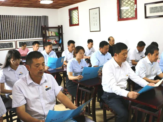 座談會結(jié)束后,所有參加黨建共建活動人員參觀了大峰山黨性教育基地“紅色南黃崖”教學(xué)點(diǎn),充分感受革命情懷、錘煉黨性意志,并在初心廣場面對黨旗舉起右手,重溫入黨誓詞,莊嚴(yán)向黨組織宣誓,叩問內(nèi)心初衷,堅定理想信念。