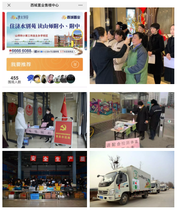 在集團(tuán)黨委的引領(lǐng)下,各級黨組織、所屬企業(yè)積極響應(yīng),主動作為,各企業(yè)主要負(fù)責(zé)同志認(rèn)真履行第一責(zé)任人職責(zé),對疫情防控工作親自安排部署、親自組織推動、親自跟蹤問效,充分發(fā)揮自身優(yōu)勢,組織調(diào)配資源和力量,全力做好疫情防控服務(wù)保障,以實際行動踐行使命和責(zé)任擔(dān)當(dāng)。集團(tuán)楊柳春風(fēng)、西城·濟(jì)水上苑等地產(chǎn)項目暫停營銷接待工作,堅持每天開展全面、持續(xù)消毒,加強(qiáng)園區(qū)、寫字樓的聯(lián)防聯(lián)控,啟動線上VR看房通道,足不出戶在家安心看房,讓客戶享受便捷、周到的服務(wù)。西城資產(chǎn)公司在西城大廈一層南門設(shè)置“消毒回廊”,公司防控小組每天到西客站東場綜合體、西城大廈、東廣場地下停車場、東廣場地下餐廳及長清西部創(chuàng)新園項目、大學(xué)城 9 號樓、長清安置三區(qū)等 7 個項目督導(dǎo)檢查疫情防控工作情況,確保區(qū)域防控措施落實到位。濟(jì)西農(nóng)場公司全員上崗,加班加點,將線上與線下銷售平臺相結(jié)合,每天向市內(nèi)配送平價新鮮蔬菜,為疫情期間全市蔬菜市場供應(yīng)和穩(wěn)定做出了積極貢獻(xiàn)。