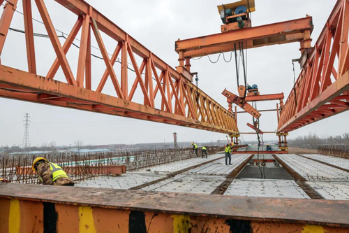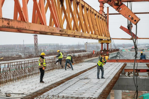春節(jié)期間,張?zhí)嵊聸](méi)有休假,每天都要到工地一線(xiàn),隨時(shí)掌握和了解施工進(jìn)展,協(xié)調(diào)解決施工過(guò)程中出現(xiàn)的各種問(wèn)題。在嚴(yán)格落實(shí)各項(xiàng)防疫措施的前提下,青年突擊隊(duì)加班加點(diǎn)干出一個(gè)春節(jié)“大禮包”:架設(shè)箱梁8跨32片,順利跨越青銀高速,實(shí)現(xiàn)關(guān)鍵環(huán)節(jié)的高效突破!