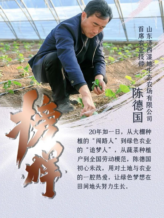 作為黃河流域濟(jì)南段的“綠色明珠”,濟(jì)西濕地四季分明、五彩斑斕。濟(jì)南城市建設(shè)集團(tuán)所屬山東濟(jì)西濕地生態(tài)農(nóng)場有限公司連片的蔬菜大棚里,首席農(nóng)業(yè)技師陳德國早出晚歸、“兩頭不見太陽”,無暇欣賞這近在遲尺的變幻景色,但他卻看得見春耕夏種、秋收冬藏,在深耕細(xì)作中收獲豐收的喜悅。20年如一日,從大棚種植的“闖路人”到綠色農(nóng)業(yè)的“追夢人”,從蔬菜種植戶到全國勞動(dòng)模范,陳德國初心未改,用對土地與農(nóng)業(yè)的一腔熱愛,讓綠色夢想在田間地頭努力生長。
