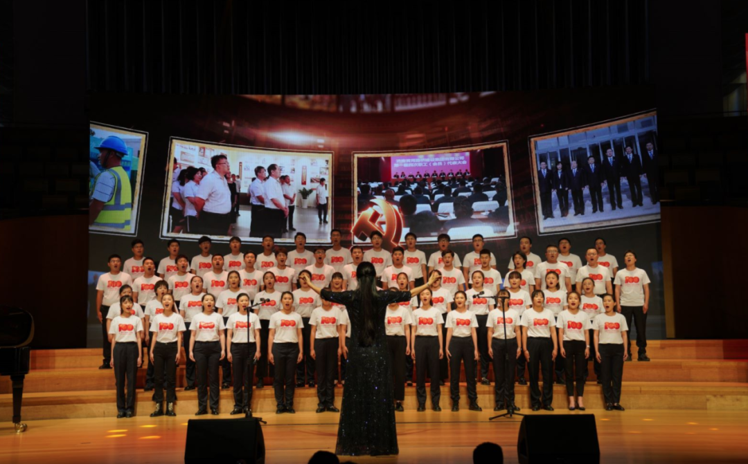 活動在《唱支山歌給黨聽》和集團總部合唱《沒有共產(chǎn)黨就沒有新中國》中拉開帷幕,按“百年追夢·慶華誕”、“千秋偉業(yè)·正風華”、“不忘初心·定復(fù)興”三個篇章依次展開,以黨的光輝歷程為主線,在音樂中回望歷史、重溫黨史、銘記初心、砥礪前行。