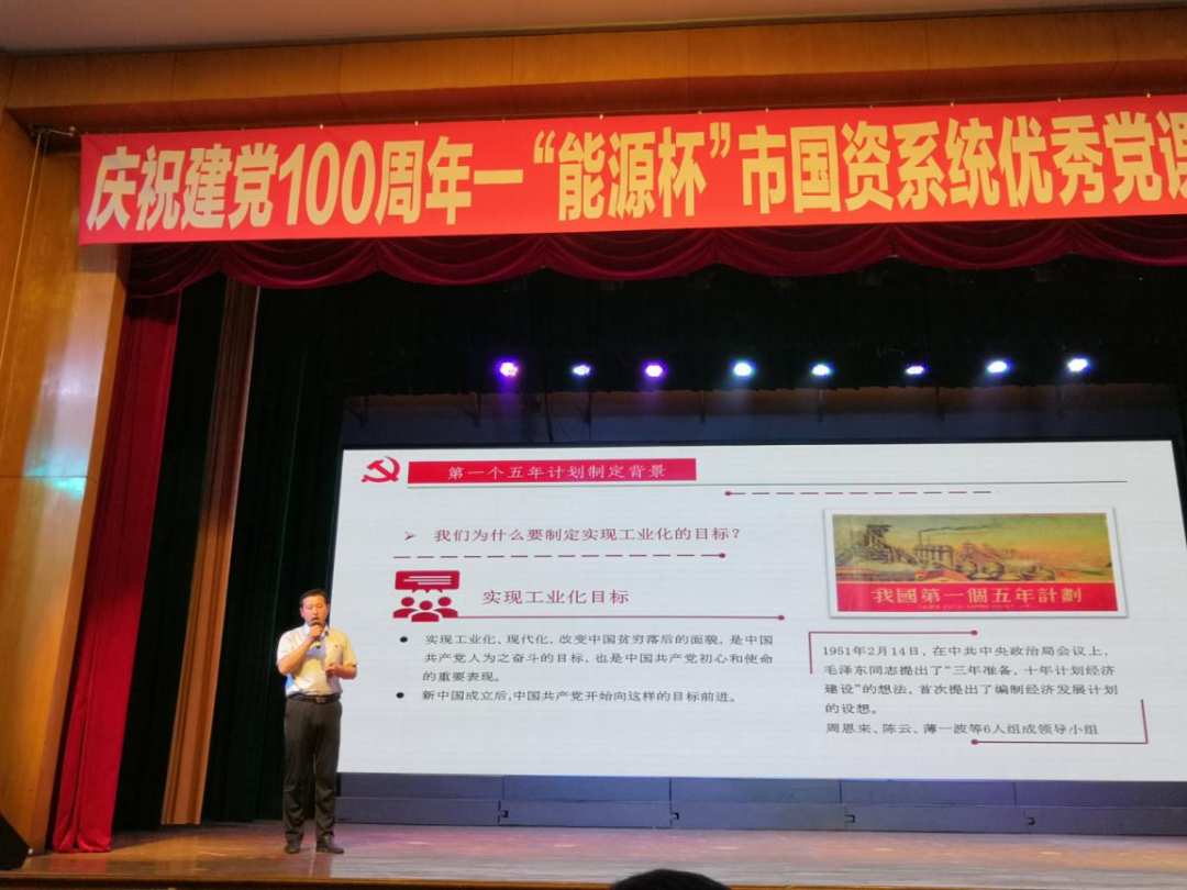 為慶祝中國共產(chǎn)黨成立100周年,扎實(shí)推進(jìn)黨史學(xué)習(xí)教育,6月2日,由濟(jì)南市國資委主辦、濟(jì)南能源集團(tuán)承辦的“能源杯”市國資系統(tǒng)優(yōu)秀黨課匯報(bào)展示觀摩會(huì)在北郊熱電廠禮堂舉行。集團(tuán)選送黨課《第一個(gè)五年計(jì)劃》,參加現(xiàn)場觀摩評比并榮獲三等獎(jiǎng)。