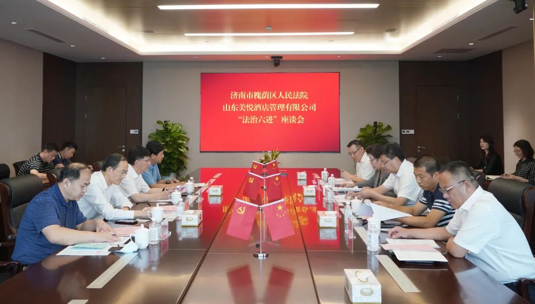 為認真貫徹落實中央和省、市關(guān)于統(tǒng)籌推進疫情防控和經(jīng)濟社會發(fā)展的部署要求,優(yōu)化法治營商環(huán)境,全力服務(wù)企業(yè)復(fù)工復(fù)產(chǎn),幫助企業(yè)解決困難問題,增強企業(yè)發(fā)展信心,8月26日,濟南市槐蔭區(qū)委常委、政法委書記熊高翔,槐蔭區(qū)人民法院黨組書記、院長劉文明率“萬警進萬企”工作組一行到濟南城市建設(shè)集團召開“法治六進”座談會,就山東美悅酒店管理有限公司相關(guān)問題進行溝通。集團黨委副書記、總經(jīng)理史海成出席座談會。
