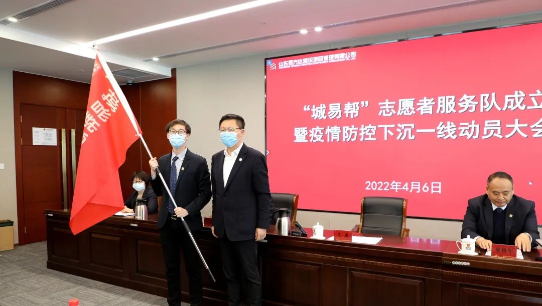 會(huì)議宣讀了公司工會(huì)關(guān)于《山東易方達(dá)建設(shè)項(xiàng)目管理有限公司關(guān)于成立“城易幫”志愿者服務(wù)隊(duì)的決定》,公司黨委書記、董事長牛勇向“城易幫”志愿者服務(wù)隊(duì)進(jìn)行授旗。