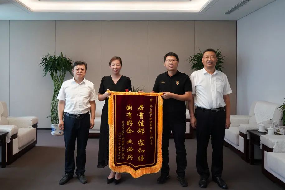 7月18日,一面印有“居有佳鄰家和睦 國有好企業(yè)必興”的錦旗送至建設(shè)集團(tuán),這是濟(jì)南市民何先生對集團(tuán)職工何倩給予其妻子的及時幫助表示誠摯的感謝。集團(tuán)黨委副書記鐘善良、政工部負(fù)責(zé)同志出席活動。