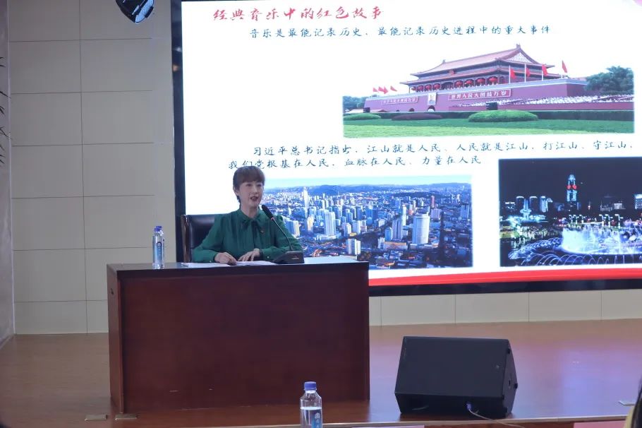 同時(shí),本次學(xué)習(xí)還特別邀請到濟(jì)南市青少年宮團(tuán)隊(duì)帶來音樂黨課《經(jīng)典音樂中的紅色故事》。課程用“理論授課+音樂作品展演”的形式,以時(shí)間軸串聯(lián)講解經(jīng)典音樂著作。黨課分《送別》與震驚中外的五四運(yùn)動(dòng)、《國民革命歌》與轟轟烈烈的大革命、《松花江上》與全民族抗戰(zhàn)的開始、《軍民大生產(chǎn)》與根據(jù)地的艱苦斗爭、《你是燈塔》與新中國的成立、《唱支山歌給黨聽》與社會主義建設(shè)的蓬勃開展、《春天的故事》與改革開放等七個(gè)部分,一首首耳熟能詳?shù)囊魳纷髌芬元?dú)唱、合唱、二胡獨(dú)奏、大提琴演奏、舞蹈等藝術(shù)形式重新演繹,歷史畫卷伴隨音樂徐徐展開,在浸潤式教育中傳承紅色基因,引導(dǎo)學(xué)員感受藝術(shù)魅力、匯聚精神力量、激發(fā)前行動(dòng)力。
