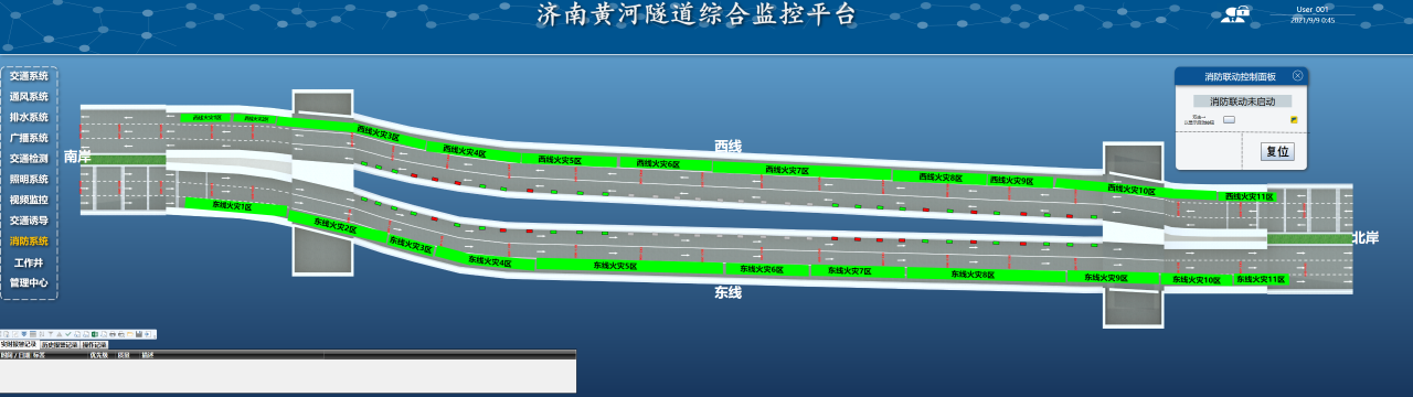 隧道消防系統(tǒng)擁有147套泡沫噴霧、136個(gè)雙波長(zhǎng)火焰探測(cè)器、87個(gè)消火栓箱、288個(gè)滅火器箱、2條感溫光纖和6臺(tái)功率110kw風(fēng)量36萬(wàn)m³/h排煙風(fēng)機(jī),設(shè)備的應(yīng)用可以在火災(zāi)初期及時(shí)發(fā)現(xiàn)并處理火災(zāi),保障隧道內(nèi)人員和設(shè)施的安全;