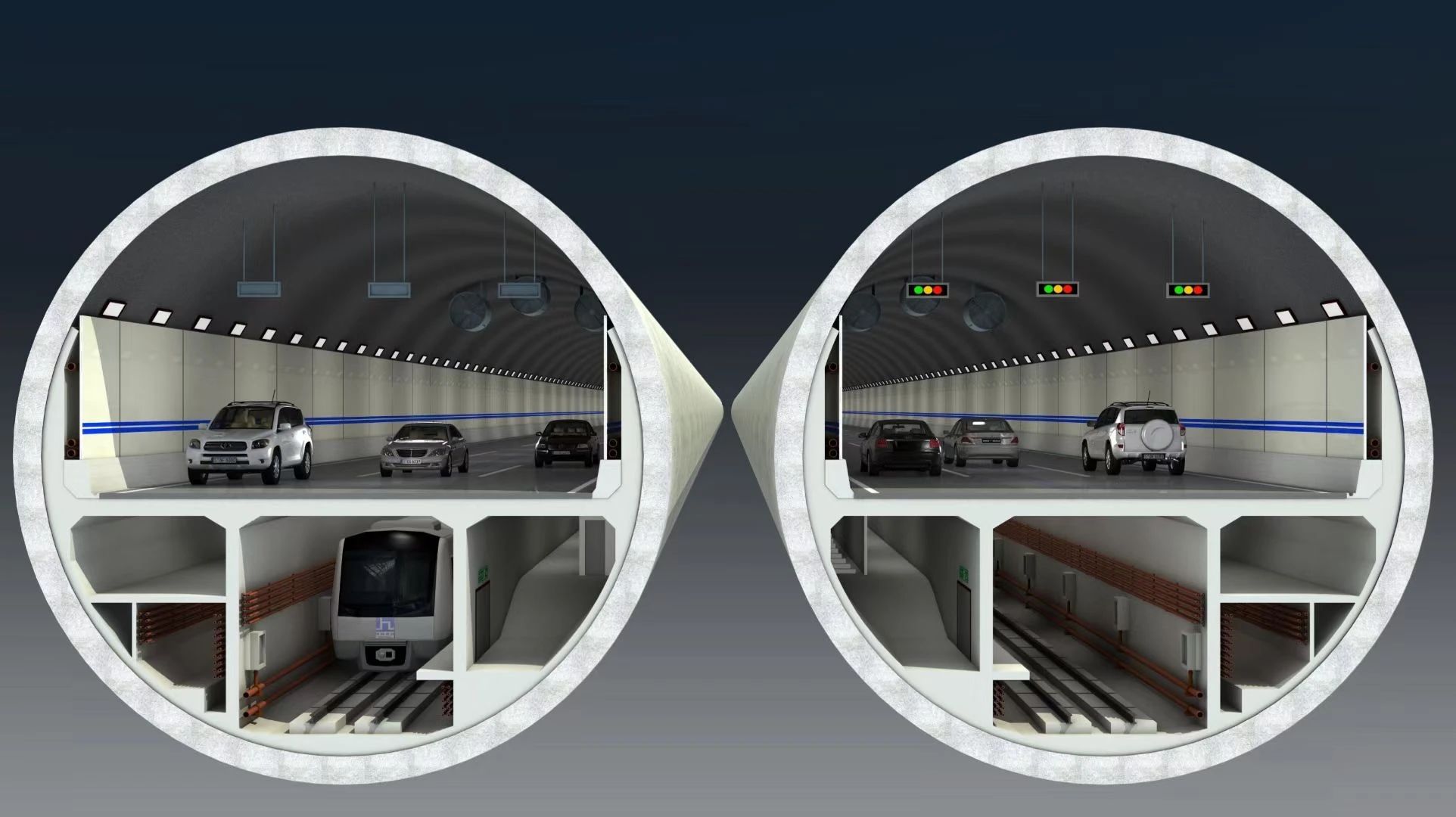 在濟(jì)南黃河濟(jì)濼路隧道行車(chē)層上,共設(shè)有34組136個(gè)廣播設(shè)備,每?jī)蓚€(gè)廣播設(shè)備間隔50米;在逃生通道中,共設(shè)有8組66個(gè)廣播設(shè)備,每?jī)蓚€(gè)廣播設(shè)備間隔75米;隧道中,已布設(shè)兩條信號(hào)泄漏光纜,確保三大運(yùn)營(yíng)商4g、5g信號(hào)無(wú)死角覆蓋和車(chē)載廣播信號(hào)全覆蓋,并在隧道應(yīng)急通道內(nèi)采用天線對(duì)打方式,從而實(shí)現(xiàn)手機(jī)無(wú)線信號(hào)覆蓋。