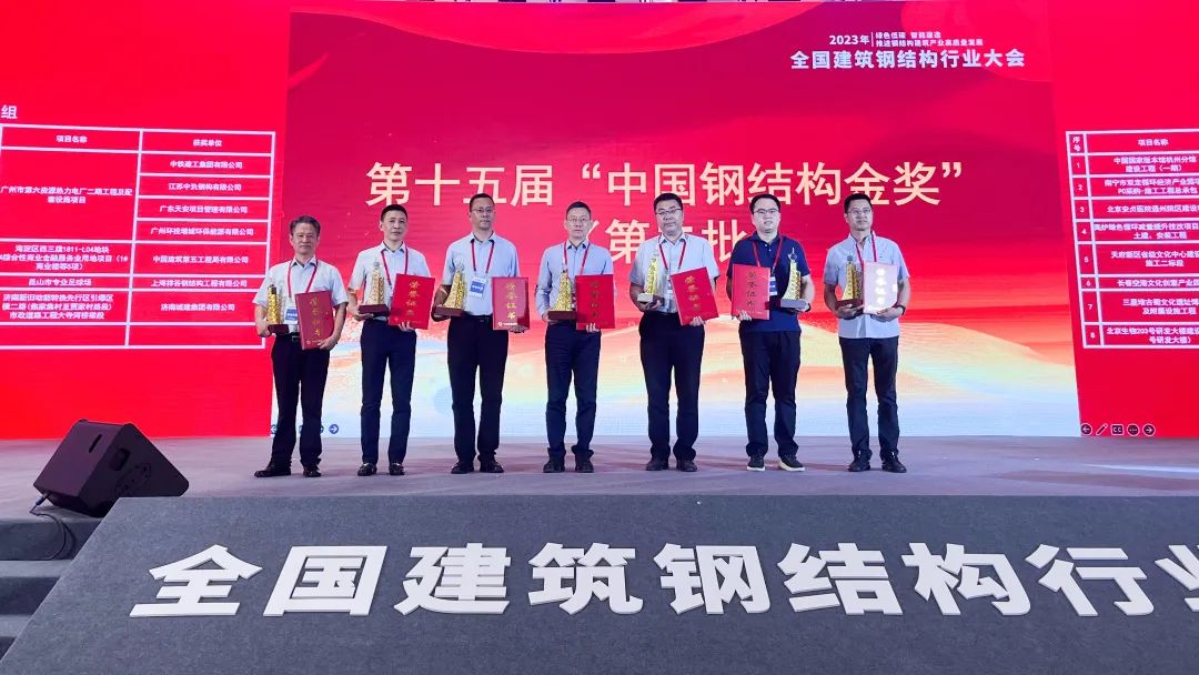 6月4日,全國建筑鋼結(jié)構(gòu)行業(yè)大會在上海舉行,會議公布第十五屆“中國鋼結(jié)構(gòu)金獎”(第二批)獲獎項目名單,由濟南城市建設(shè)集團(tuán)投資建設(shè)的濟南黃河鳳凰大橋工程,受委托建設(shè)的濟南新舊動能起步區(qū)橫一路大寺河橋工程及橫二路大寺河橋工程榮獲“中國鋼結(jié)構(gòu)金獎”,建設(shè)集團(tuán)黨委副書記、總經(jīng)理許為民代表集團(tuán)領(lǐng)獎。