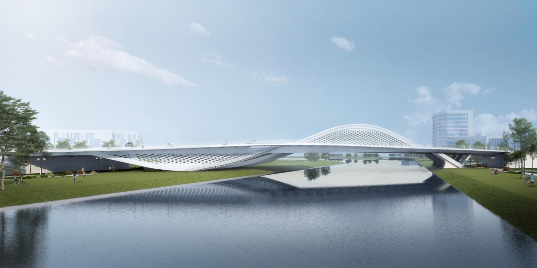 橫一路大寺河橋由世界著名橋梁設(shè)計師Marc MIMRAM先生主設(shè)計,由建設(shè)集團(tuán)所屬濟南金曰公路工程有限公司承建。橋梁全長168.1m,采用三跨梁拱組合鋼結(jié)構(gòu),一跨(93.5m)跨越大寺河主河道,橋梁橋面總寬35.9~42.6m,橋梁鋼結(jié)構(gòu)總鋼材用量4300余噸。