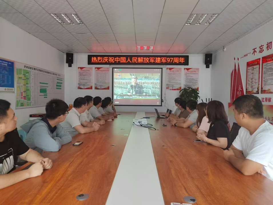 城建設(shè)計院、管片制造公司組織黨員干部到濟南戰(zhàn)役紀念館,緬懷先烈豐功偉績,傳承紅色基因,并重溫入黨誓詞。市政集團組織職工觀看慶祝建軍97周年直播相關(guān)內(nèi)容。