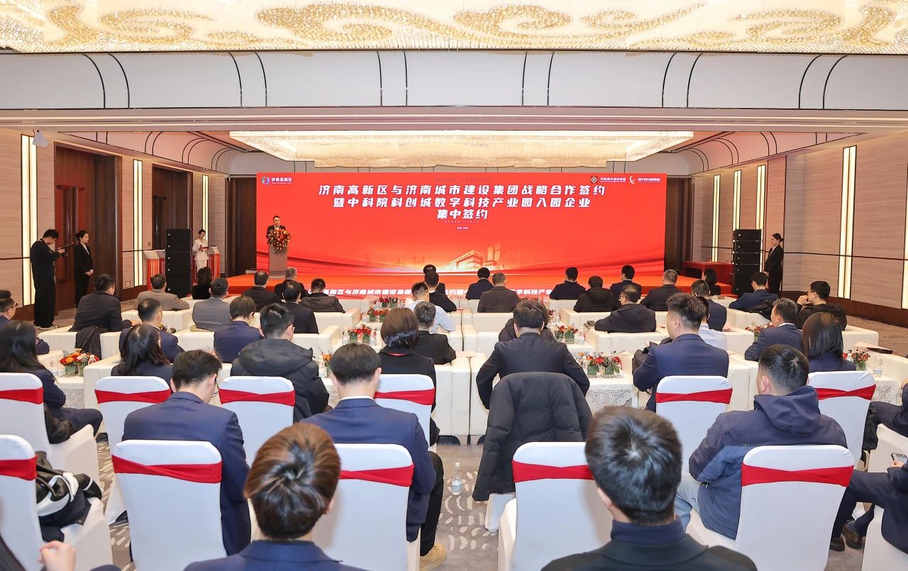 12月25日,濟(jì)南高新區(qū)與濟(jì)南城市建設(shè)集團(tuán)舉行戰(zhàn)略合作簽約暨中科院科創(chuàng)城數(shù)字科技產(chǎn)業(yè)園入園企業(yè)集中簽約活動。濟(jì)南市副市長,高新區(qū)黨工委副書記、管委會常務(wù)副主任任廣鋒出席活動并見證簽約。市科技局黨組書記、局長黃波,濟(jì)南高新區(qū)管委會副主任、濟(jì)高科創(chuàng)投資集團(tuán)董事長兼總經(jīng)理劉松,濟(jì)南城市建設(shè)集團(tuán)黨委副書記、總經(jīng)理?xiàng)罘?,建設(shè)集團(tuán)副總經(jīng)理徐文東參加活動。