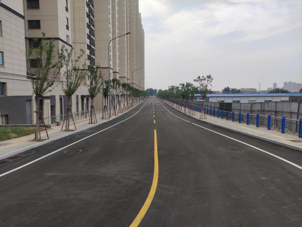 聊城路西延新建道路全長802.71米,其中西段西起月牙路東至順安路北延,紅線寬度25米;東段西起順安路北延?xùn)|至縱四路,紅線寬度24米。