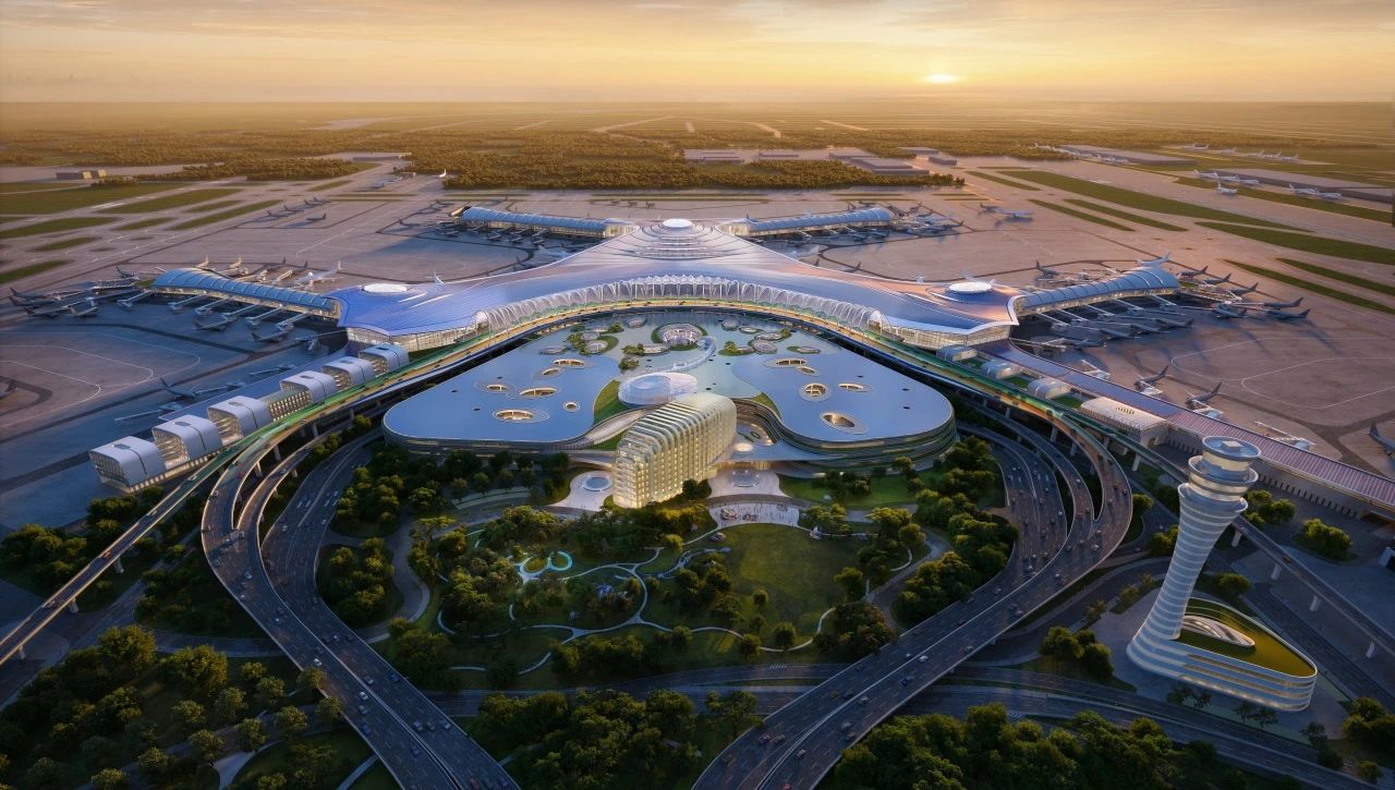 作為建設(shè)交通強(qiáng)國山東示范區(qū)的重大標(biāo)志性、引領(lǐng)性工程,濟(jì)南機(jī)場二期改擴(kuò)建工程新建60萬㎡T2航站樓,與17萬㎡現(xiàn)T1航站樓組成近80萬㎡航站樓,新建2條3600米跑道,與現(xiàn)跑道形成3跑道運行,新建38萬㎡綜合交通中心,引入濟(jì)濱高鐵和3條地鐵。