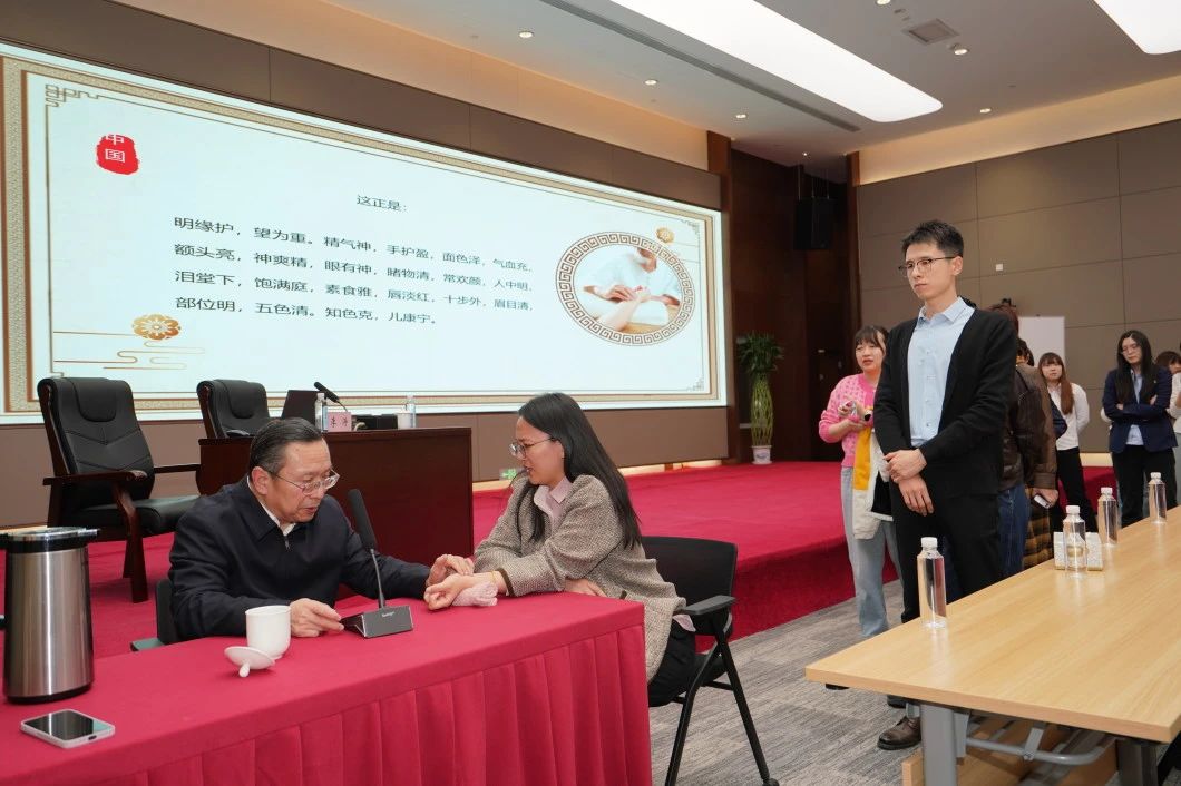講座內容涵蓋了中醫(yī)養(yǎng)生理念、常見職業(yè)病的中醫(yī)防治、中醫(yī)保健方法、兒童常見病及推拿案例展示等多個方面,還針對辦公室一族常見的職業(yè)病,如頸椎病、腰椎病等,提供了中醫(yī)防治的實用建議;李濤老師現(xiàn)場為員工把脈問診,結合體質辨識給出個性化調理方案。