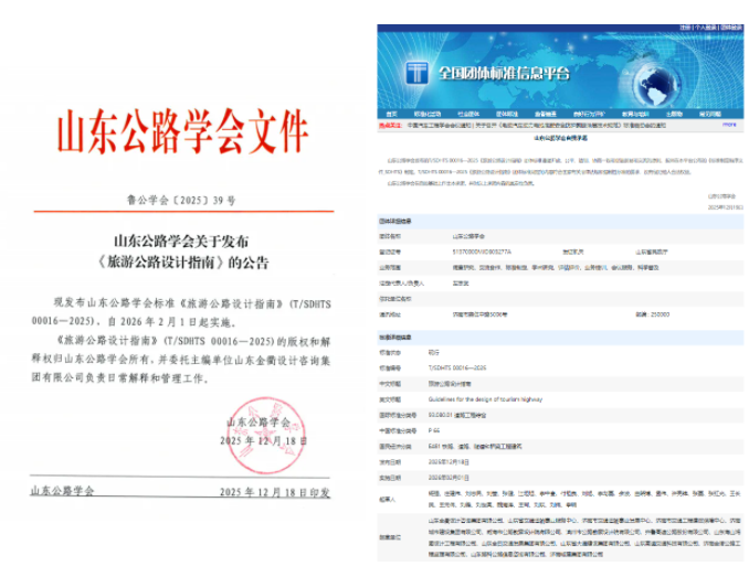近日,由建設集團所屬山東金衢設計咨詢集團有限公司主編的《旅游公路設計指南》(以下簡稱《指南》)正式發(fā)布,將于2026年2月1日全面實施。作為山東省首部系統(tǒng)規(guī)范旅游公路設計的技術標準,《指南》填補了省內該領域標準體系的空白,標志著山東“交通+旅游”深度融合邁入標準化發(fā)展新階段。